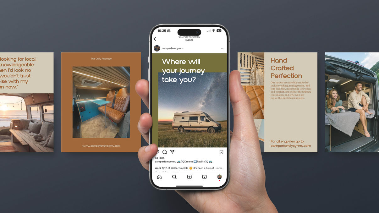 The existing Camper Family Cymru brand already worked well at a small scale - but the company wanted to realign themselves to the luxury market, attracting higher value customers. We were tasked with creating a fresh, premium logo and brand assets to support.